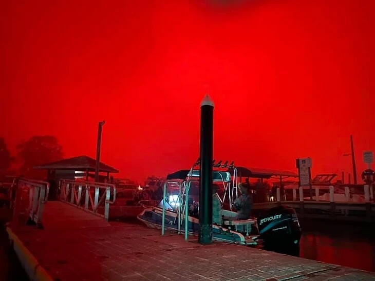 • В самой Австралии ситуация еще хуже. Например, в городке Маллакута, расположенном примерно в 500 километрах от Сиднея и Мельбурна, из-за дыма днем было темно, как ночью.