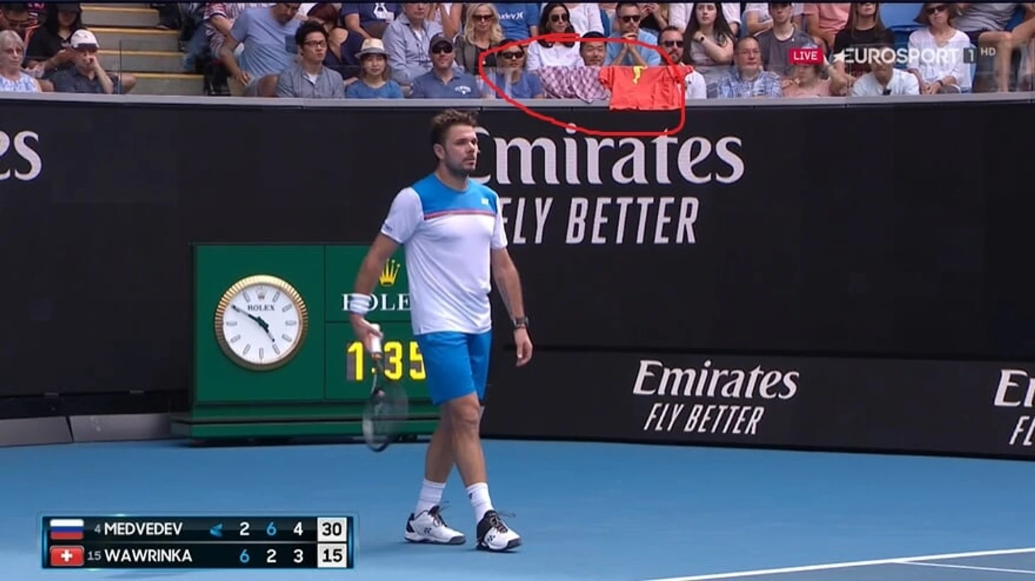 5:3 А на трибунах, кстати, кто-то повесил знаменитые шорты, в которых Вавринка выиграл «Ролан Гаррос»-2015.