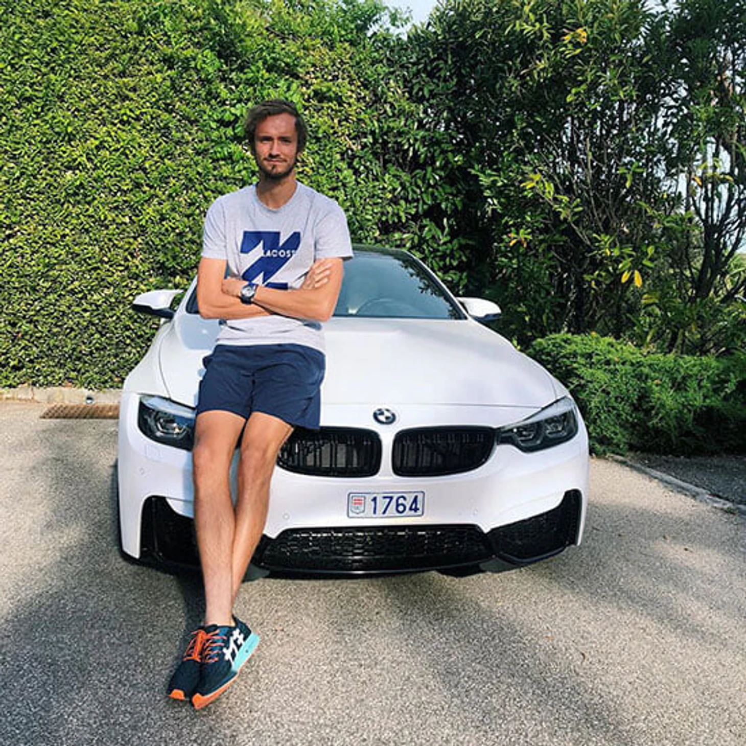 Медведева еще чуть раньше вычислили в соцсетях: полиция опубликовала фото машин нарушителей, и болельщики узнали в белом BMW автомобиль, на фоне которого россиянин в начале мая позировал в инстаграме. С немецким концерном у финалиста US Open спонсорский контракт, но на фото – его личная машина.
