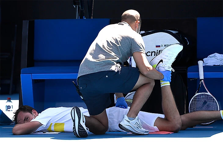 В тот момент нервничать заставляло не только ментальное, но и физическое состояние Медведева. При счете 2:5 в четвертом сете он вызвал на корт врача и сказал, что потянул ягодицу. И объяснил, что у него такое ощущение, будто болит кость. Чтобы оказать помощь, Даниила увели с корта.