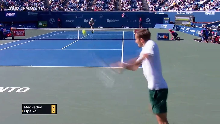 9. Медведев вообще так здорово тащил, что Опелка к концу матча уже не знал, как ему завершать атаки. Это сыграло очень важную роль на брейк-пойнте во втором сете, когда американец мог отыграть подачу.