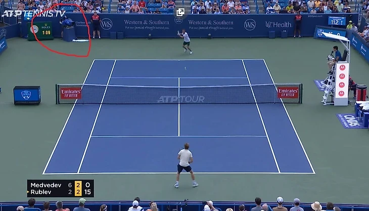 2:2 Вот, кстати, о какой камере речь. Да, она стоит в углу корта, но Медведев частенько оказывается в ее районе, когда обороняется.