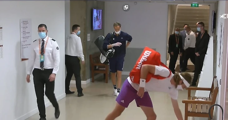 А это Медведев перед вечерним четвертьфиналом «Ролан Гаррос».