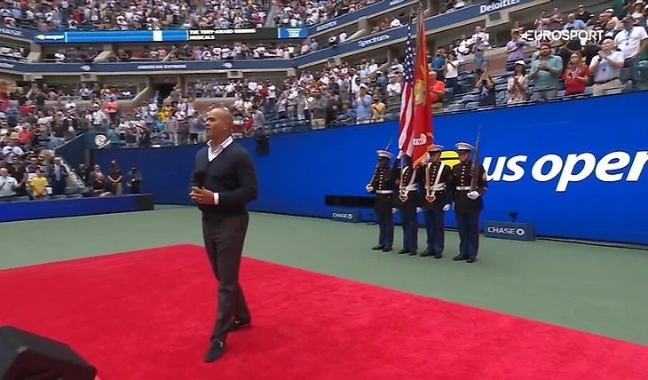 23:00 Игроки еще готовятся в подтрибунке – Джокович бросает утяжеленные мячи. А на корте, тем временем, идет церемония открытия финала – с участием американских морпехов (куда же без них).