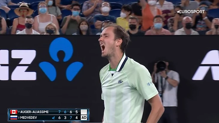 💪 Даниил Медведев! Отыграл матчбол и с рыком и руганью ушел с 0:2 по сетам в четвертьфинале Australian Open