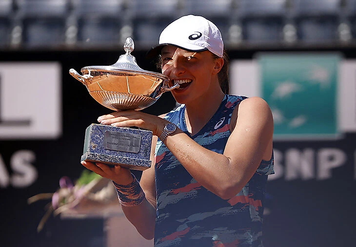 • еще один показатель успехов Иги – призовые. В этом году она выиграла больше всех не только в женском туре, но и в мужском – 4 млн долларов (у мужчин лидирует Алькарас с 3,7). Это особенно мощное достижение, потому что, например, в Риме она заработала почти на 500 тысяч меньше того, что выиграет чемпион-мужчина.