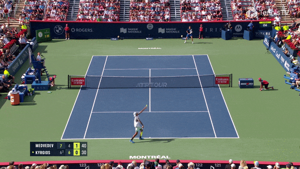 Но из-за того, что на «Уимблдоне» не было очков, Кириос засел низко в рейтинге, и в Монреале уже во втором круге вышел на прошлогоднего чемпиона и первого сеяного Даниила Медведева.
