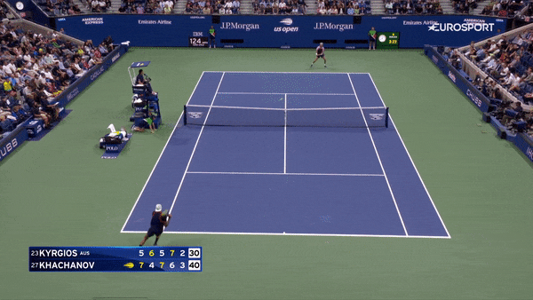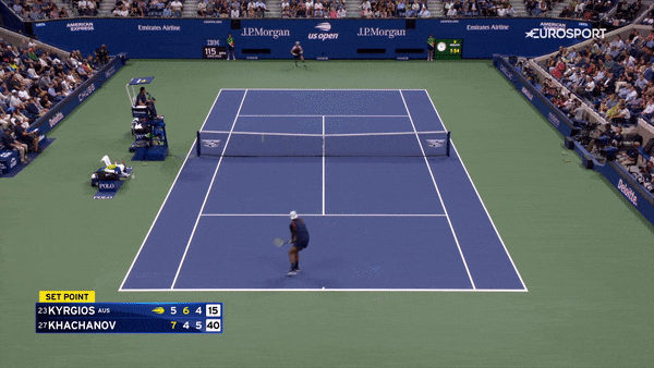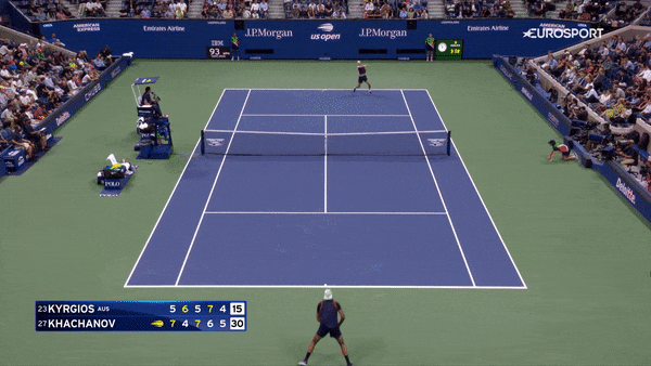 Но еще Хачанов провоцировал очень много ошибок первым ударом при помощи приемов в ноги. Причем он одинаково хорошо их выполнял, когда Кириос оставался на задней линии и когда австралиец выходил к сетке.