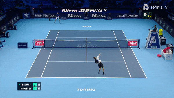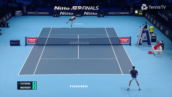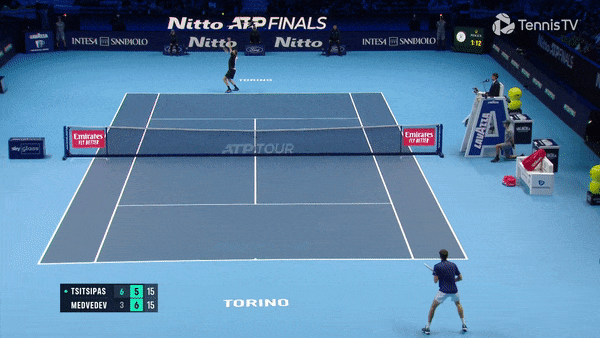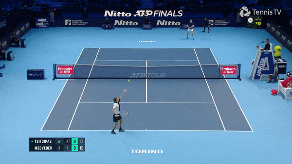Во всех последних матчах против Даниила грек старается как можно больше розыгрышей завершать у сетки. В этом ему очень помогают широкие уходящие подачи, максимально эффективно эксплуатирующие глубокую позицию россиянина на приеме. У правшей, как Циципас, это особенно хорошо работает в первый квадрат.
