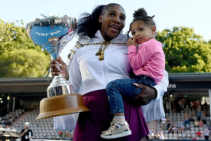 Например, в Окленде в 2020-м Серена выиграла последний титул WTA и на фото с трофеем у нее в одной руке кубок, а в другой – дочка.
