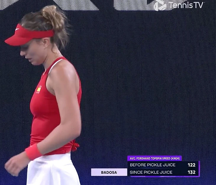 Рассол (и последовавший за ним массаж) оказался таким эффективным, что через полтора гейма показали статистику: после его приема средняя скорость форхенда Бадосы увеличилась на 10 км/ч.