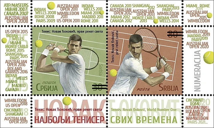 Сербская почтовая марка с Джоковичем (2021)