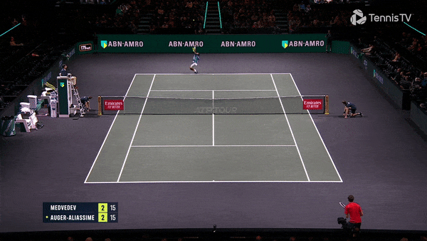 Оже-Альяссим пытался реализовывать уже ставшую классикой антимедведевскую тактику – выбивать уходящими подачами, вскрывать корт форхендом, выходить к сетке. И у него есть арсенал для воплощения этих задумок.