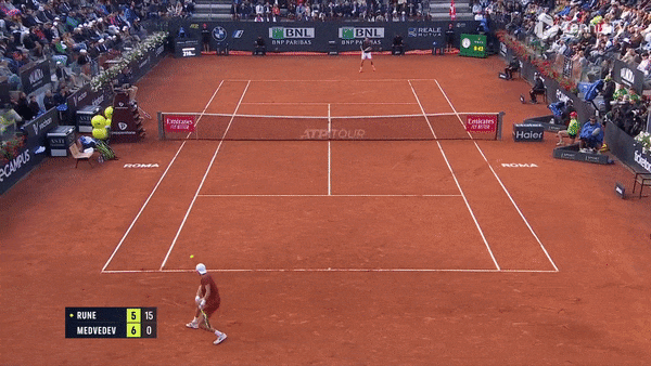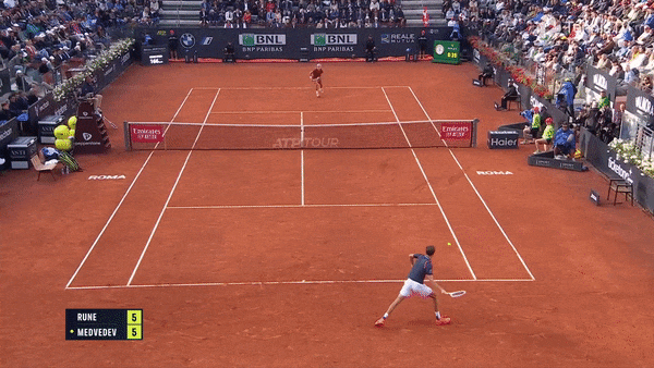 • У Руне был очень хороший отрезок в начале второго сета, когда он действовал очень активно и мощно, но в целом он зачастую играл слишком пассивно. И Медведев его стабильно за это наказывал тем, что добавлял скорости ударам и перехватывал позицию.