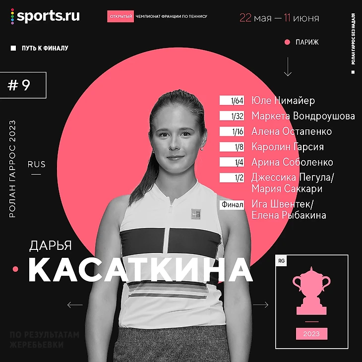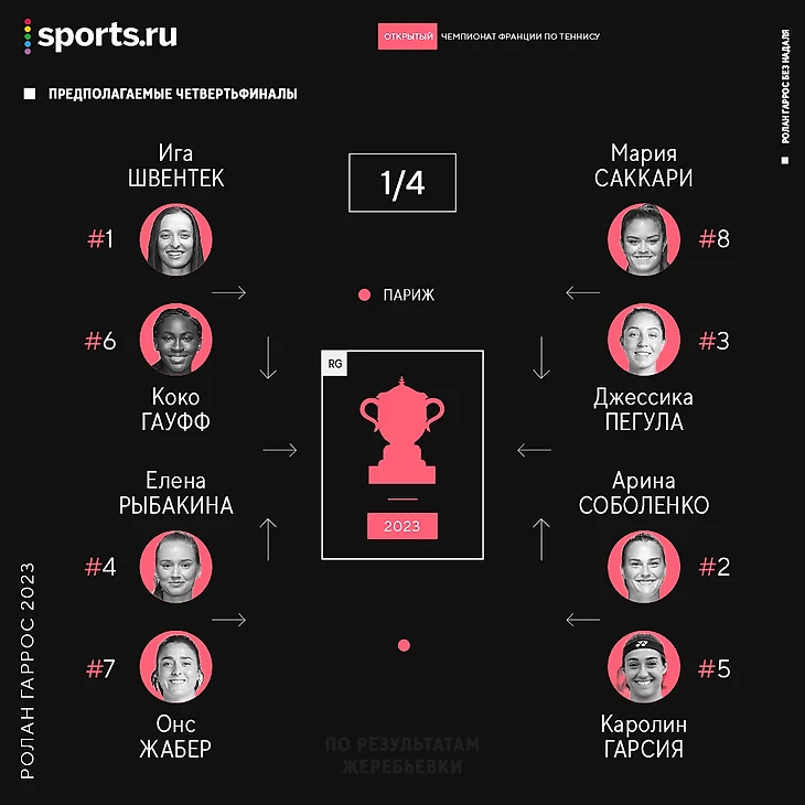 А дальше финалистка-2019 Вондроушова, всегда неудобная Остапенко, мощная Гарсия. И в четвертьфинале Соболенко.