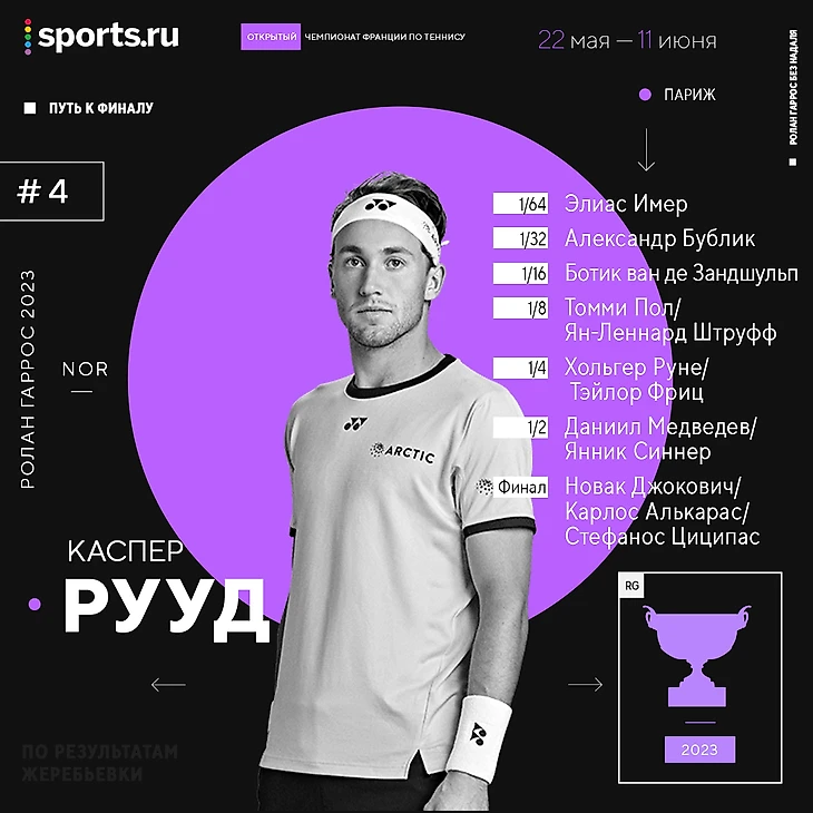 Рууд "может проиграть в первом" -- в Риме играл прилично, на РГ всегда был хорош. Первые два круга пройдёт, ван Зандсхульп и Штруфф сложнее, но скорее тоже.