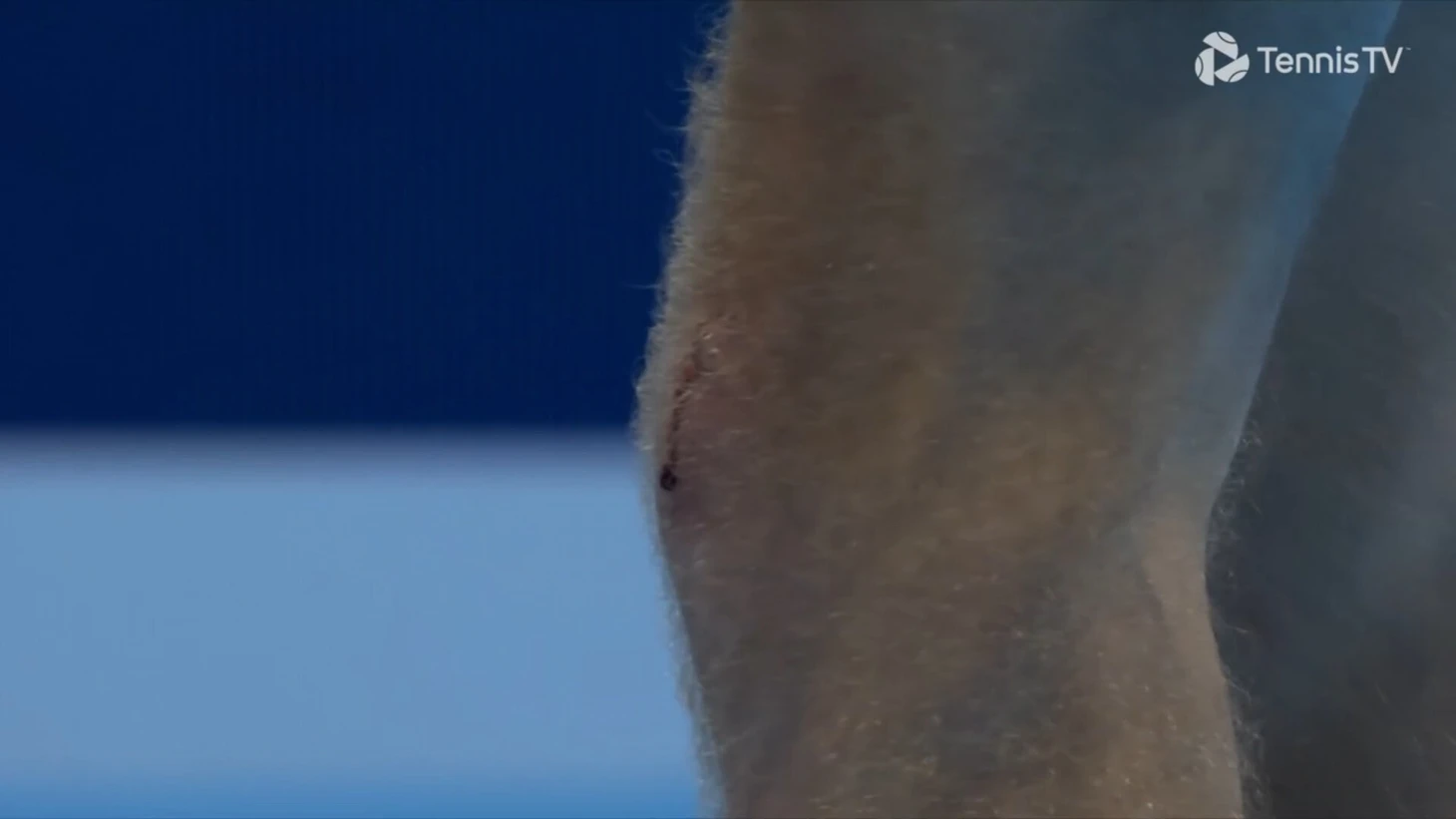 Рублев пугает гневом – разбил себе колено в кровь. Нанес шесть ударов ракеткой