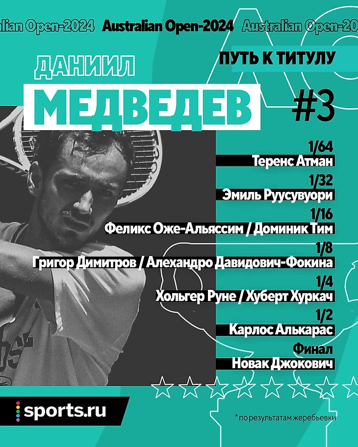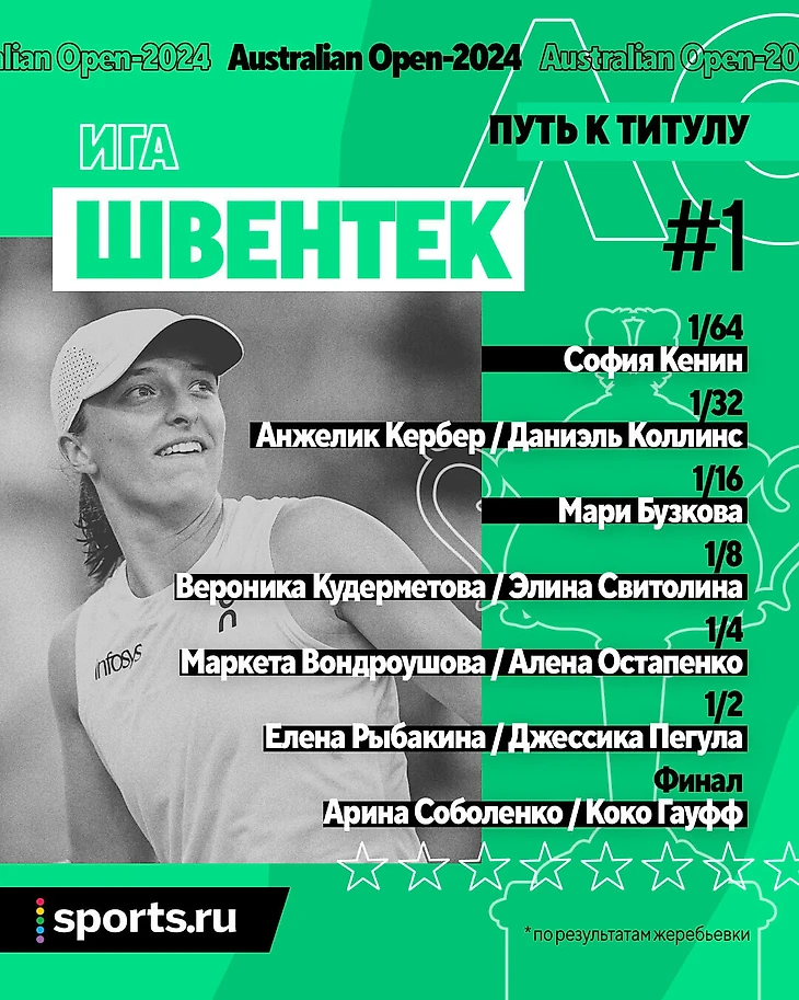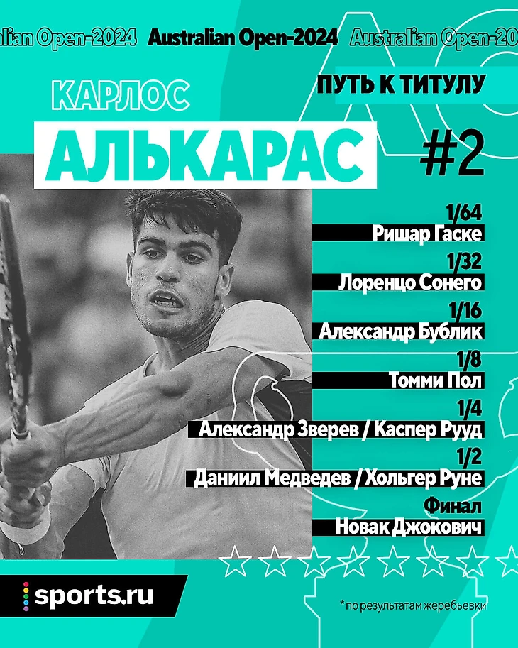 Уже в ночь с субботы на воскресенье стартует Australian Open-2024. По традиции мы смотрим, какой путь к титулу по результатам жеребьевки выпал фаворитам.