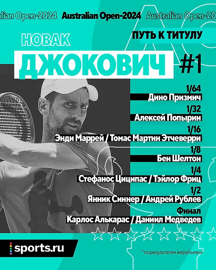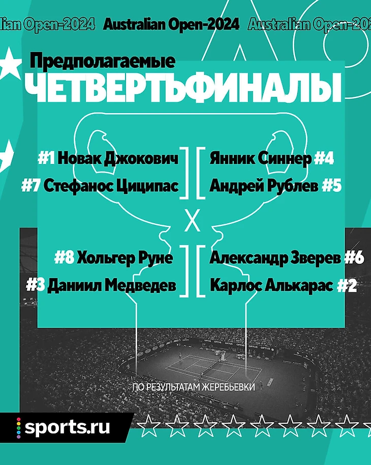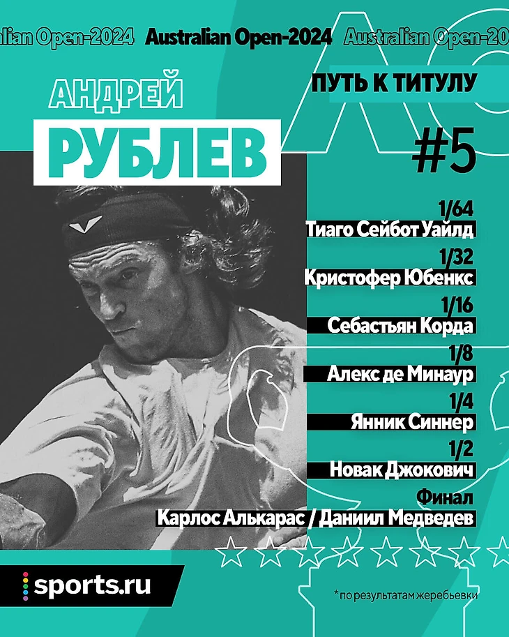 Рублев впервые выйдет в 1/2 ТБШ? Соболенко защитит титул? Опять победа Джоковича? Разбираем сетки Australian Open