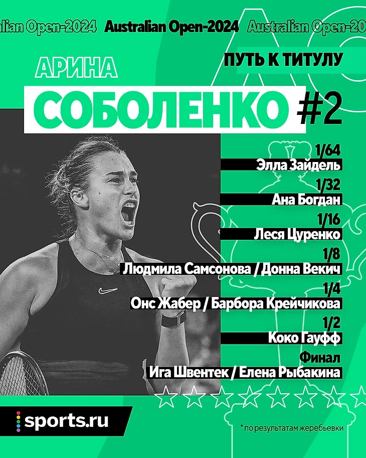 У действующей чемпионки Арины Соболенко сетка хорошая. Правда, в четвертьфинале и полуфинале могут быть теннисистки, которые обыграли ее на двух последних «Шлемах» – Жабер и Гауфф.