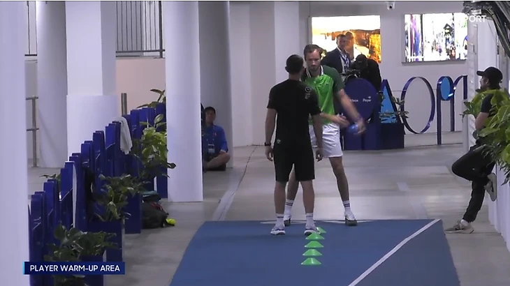 Медведев тоже разминается
