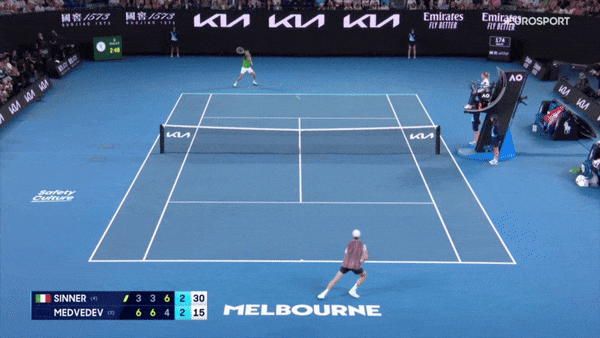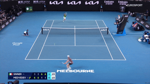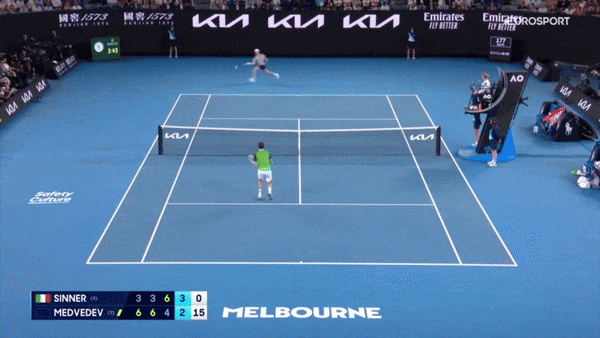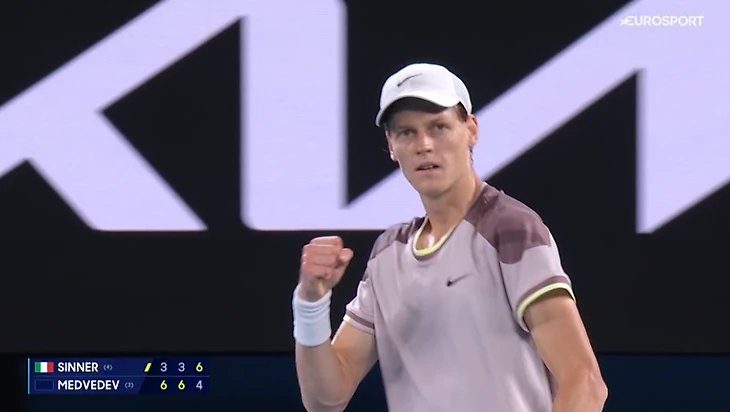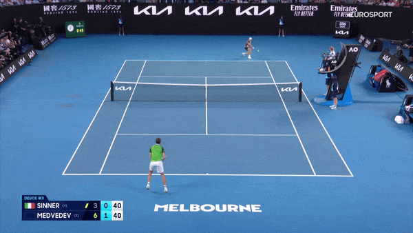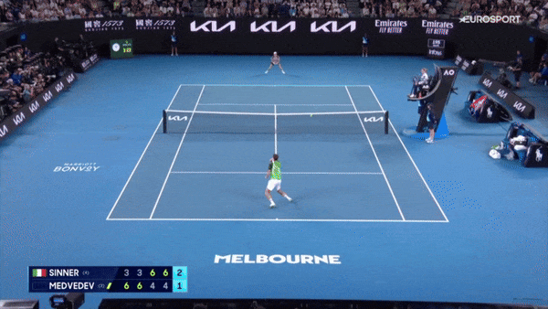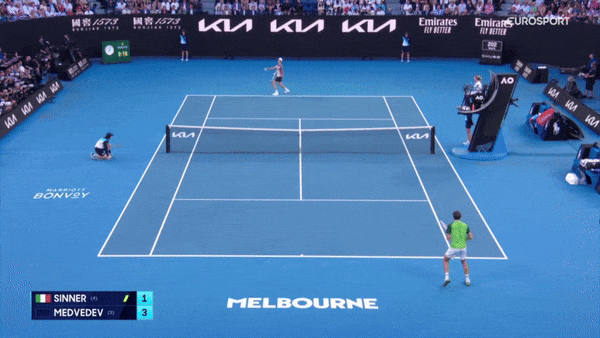 Синнер огненно начал – с обводящего бэкхенда по линии, который Медведев не обработал у сетки.