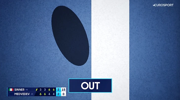 Ровно – мяч задел трос после удара Синнера, отскочил высоко, и Даниил вколотил справа навылет.