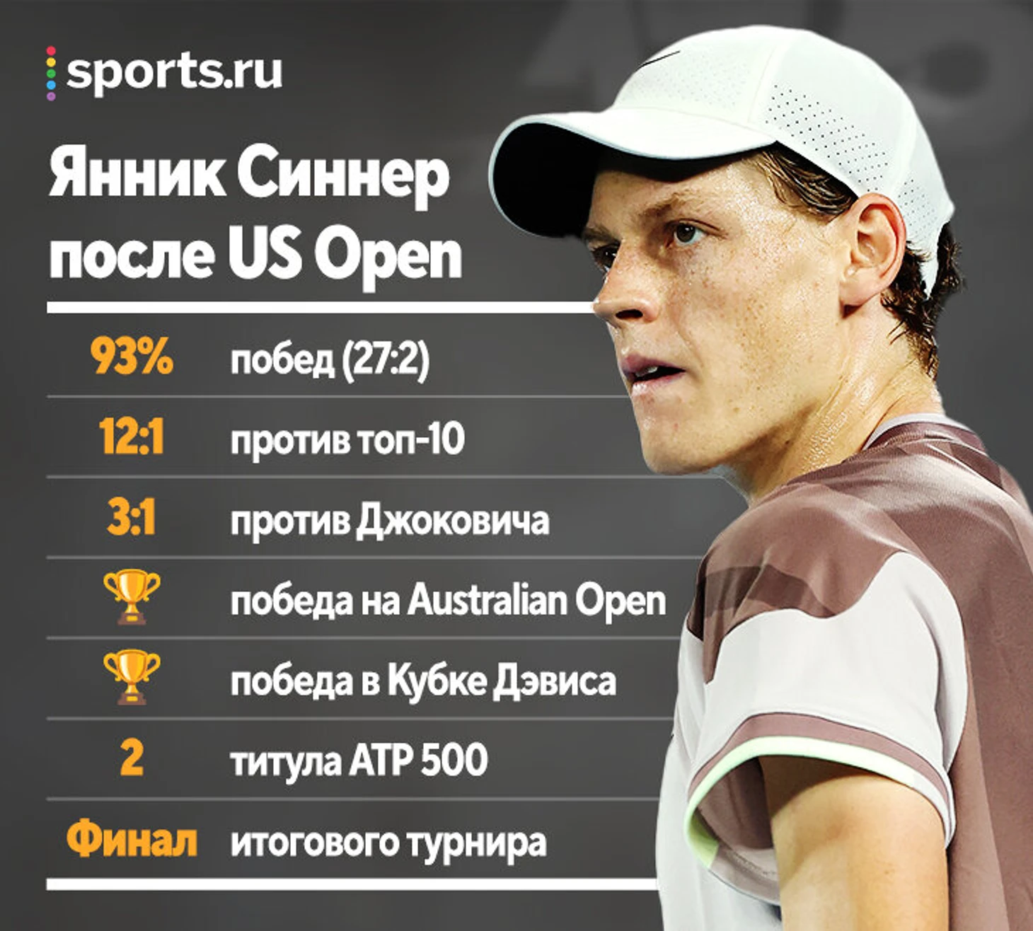 Доминирование Синнера началось не в этом сезоне, а после US Open. С конца сентября он выдает достижение за достижением.