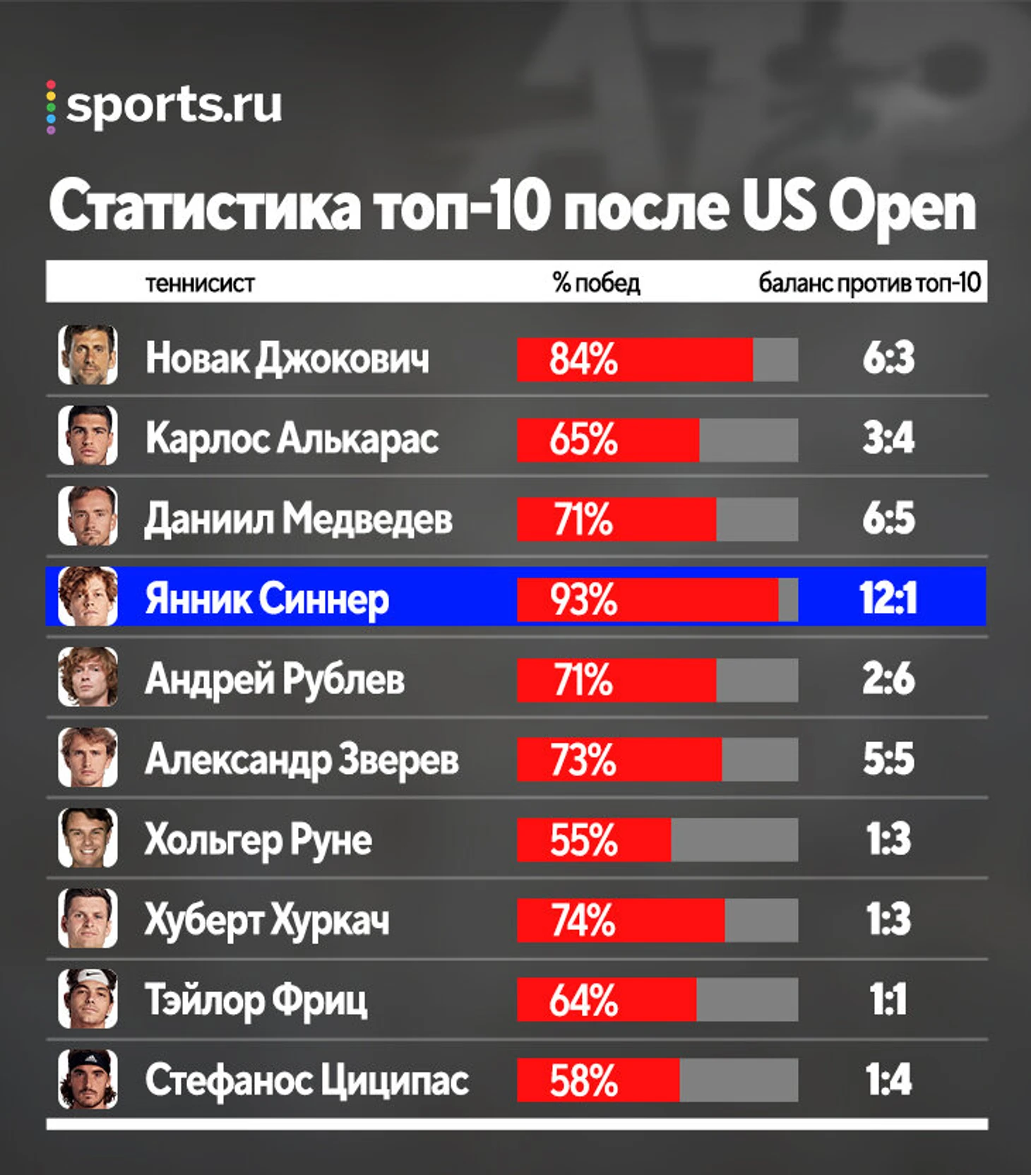 9. И психологически Синнер очень силен. Опять же, на «Уимблдоне» он говорил, что принял статус игрока топ-10. А после US Open он как будто обрел состояние, необходимое для стабильных побед над лучшими.