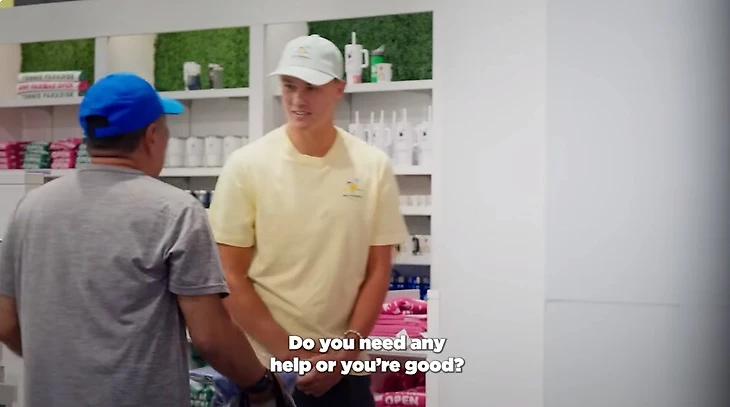 Отлично в роль вжился Де Минаур, который подсказывал («Ой, кривовато. Хотите я за руль сяду и поставлю ровно?») и шутил («Добро пожаловать в теннисный рай. Вы пока на парковке, но вы уже близки»). А еще предлагал лучшие места на парковке в обмен на секретный пароль.