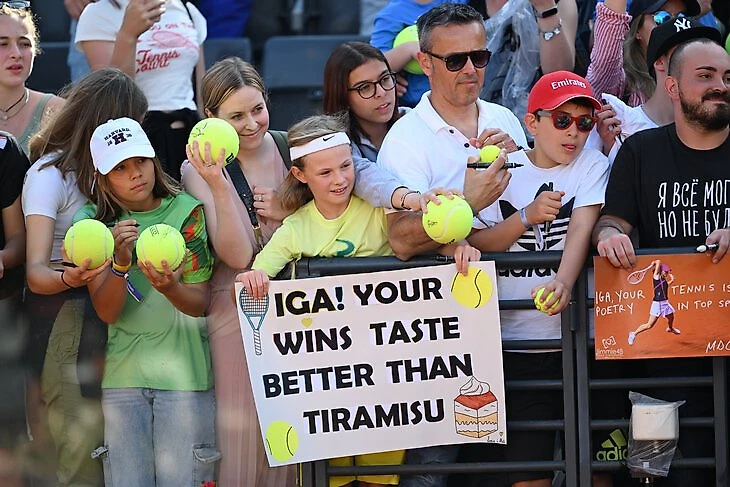 А по ходу матча ее поддерживали изобретательные болельщики с банером «Ига, твои победы вкуснее тирамису».