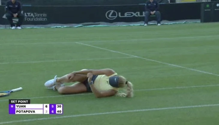 Анастасия Потапова поскользнулась, упала на корт и снялась с матча в первом круге в Истбурне – она повредила колено.