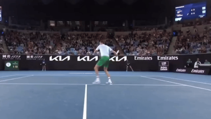 На тай-брейке второго сета при счете 2:2 у Медведева была необычная двойная ошибка – у него дважды подряд зафиксировали зашаг. Это делает специальный человек, который в подтрибунном помещении смотрит камеру, расположенную на задней линии.
