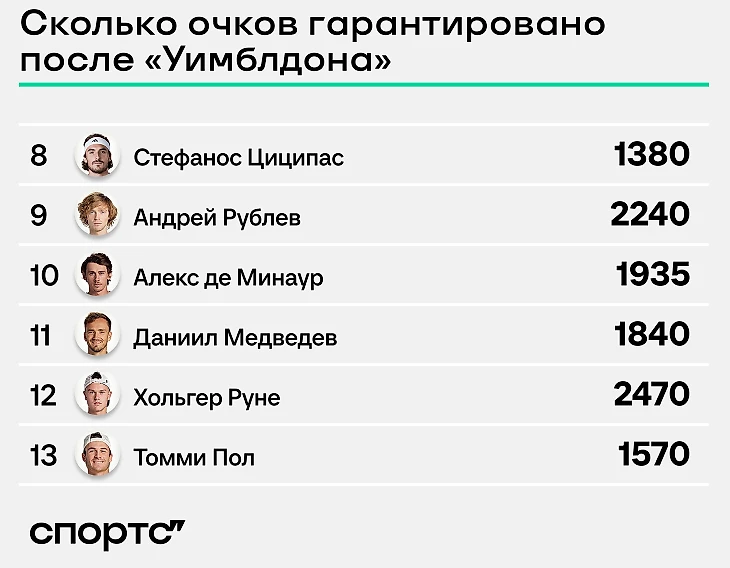 Если посмотреть, сколько очков гарантированно останется после «Уимблдона», картина такая.