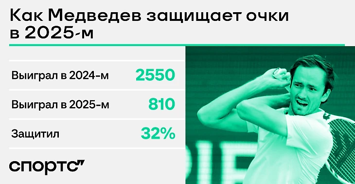 Если Медведев сохранит ту же продуктивность, то за отрезок грунта и травы заработает около 460 очков. Получается, после «Уимблдона» у него останется около 2300.