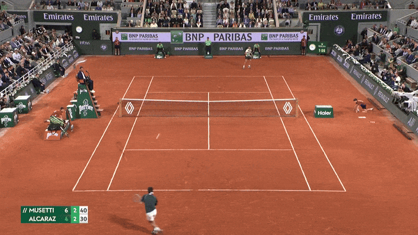 Первый полуфинал мужского «Ролан Гаррос» начинался очень мощно – Лоренцо Музетти выиграл первый сет у действующего чемпиона Карлоса Алькараса.