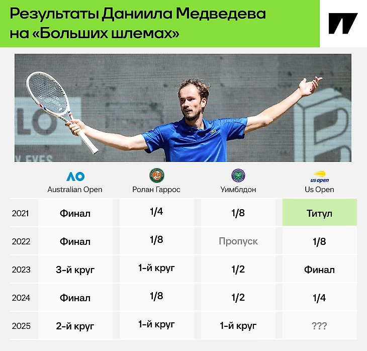 Медведев на «Больших шлемах» в 2025-м – хуже некуда