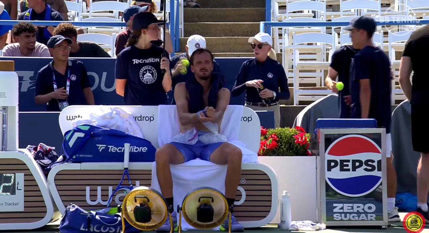 Россиянин не был единственным, кто пострадал от жары. Например, перед ним на том же корте играла Эмма Радукану и тоже брала медицинский перерыв. А после матча объяснила: