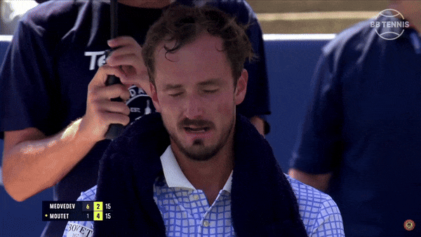 По ходу второго сета Даниилу было так жарко, что он вызвал врача прямо во время гейма на подаче француза. Сначала он сказал судье: «Голова кружится».