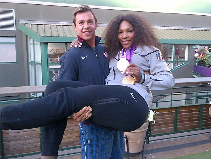 Но отношения Уильямс и Бажина, наверное, не имеют аналогов. Бажин, немец с сербскими корнями, подавал большие надежды в конце 90-х. Но когда ему было 15, его отец (который являлся и его тренером) погиб в автокатастрофе, и Бажин потерял мотивацию. В 2007-м он работал тренером в Мюнхене, и его попросили потренироваться с Уильямс. С тех пор они всегда рядом. За эти семь лет он перестал быть просто спарринг-партнером: он работает с ней в тренажерном зале, часто приходит на разные мероприятия, он стал ей другом и иногда выступает ее телохранителем.