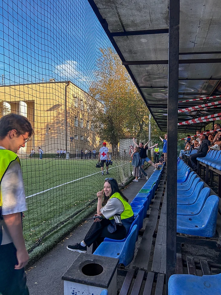 -Вы на какой матч? - спрашивает меня надсмотрщица в желтом жилете