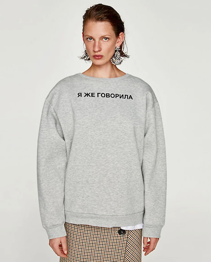 В Zara – толстовку с надписью «Я же говорила» (около 2 тысяч рублей).