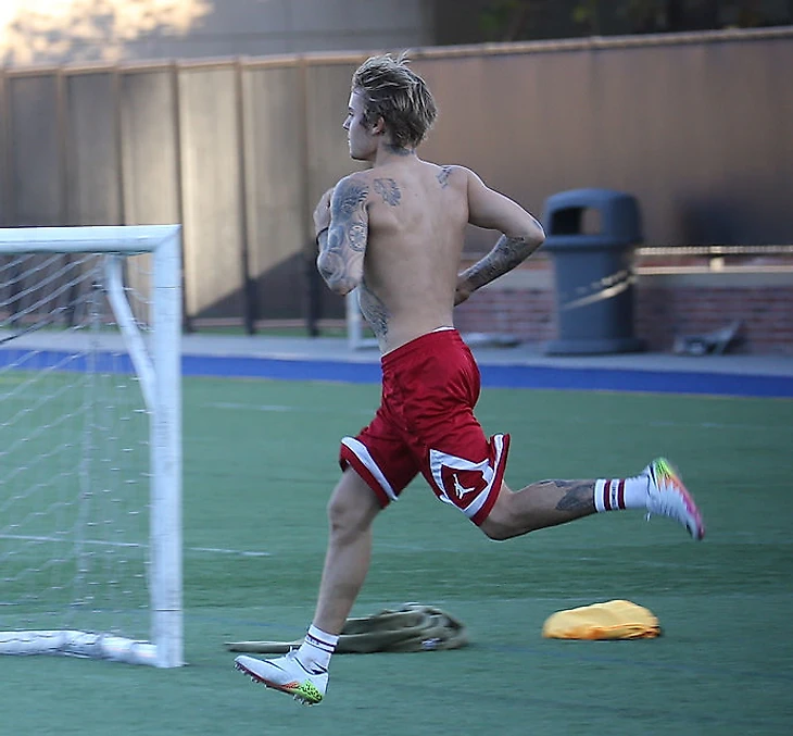 На днях Джастин Бибер приехал в Калифорнийский университет в Лос-Анджелесе, чтобы поиграть в футбол со студентами. С собой певец взял две пары бутс:
