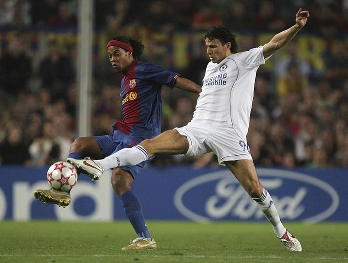 Впервые Ронни вышел в бело-золотой версии этих бутс в 2005 году. В этих же бутсах он забил один из лучших голов за карьеру – в марте 2006-го «Челси» в Лиге чемпионов. Это был второй матч 1/8 финала, первый «Барса» выиграла 2:1. Роналдиньо получил передачу от Это’О, ушел от Карваьлю, сбил с ног Терри и пробил Чеха. В концовке Лэмпард реализовал пенальти, но было поздно. После игры Жозе Моуринью ругался на судей: «Мы играли с «Барселоной» четыре раза за два сезона, и когда составы были полные (в первом матче 1/8 у «Челси» удалили Асьера Дель Орно – Sports.ru), он нас не обыгрывали – это реальность».