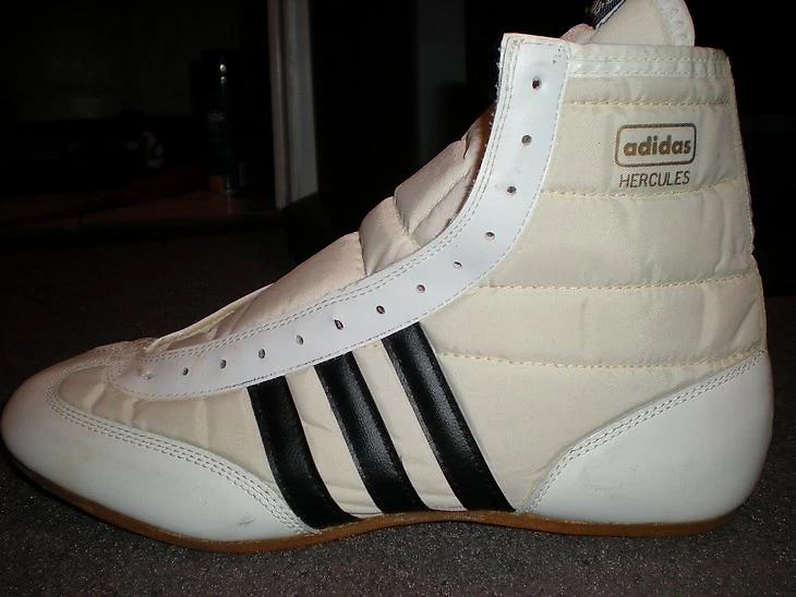 Это была пара adidas Hercules, созданная для занятий боксом. Ничем не примечательная модель, которой давно нет в продаже – тем не менее в этих кроссовках Фредди выходил на концерты по всей Европе.