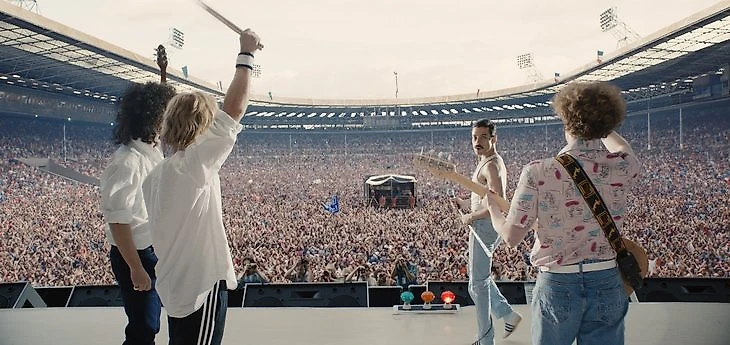 Одна из ключевых сцен фильма посвящена легендарному концерту Queen на фестивале Live Aid в 1985-м. Он прошел в поддержку пострадавших от страшного голода в Эфиопии в середине 80-х. Live Aid проводили синхронно сразу на двух огромных площадках — «Уэмбли» (тогда арена вмещала 82 тысячи человек) и стадионе Джона Ф. Кеннеди (99 тысяч человек, Филадельфия, США, снесен в 1992-м). Телетрансляцию Live Aid посмотрели почти два миллиарда человек в 150 странах мира. В итоге организаторы собрали 283 млн долларов, хотя планировали сильно меньше (около 1 млн фунтов).