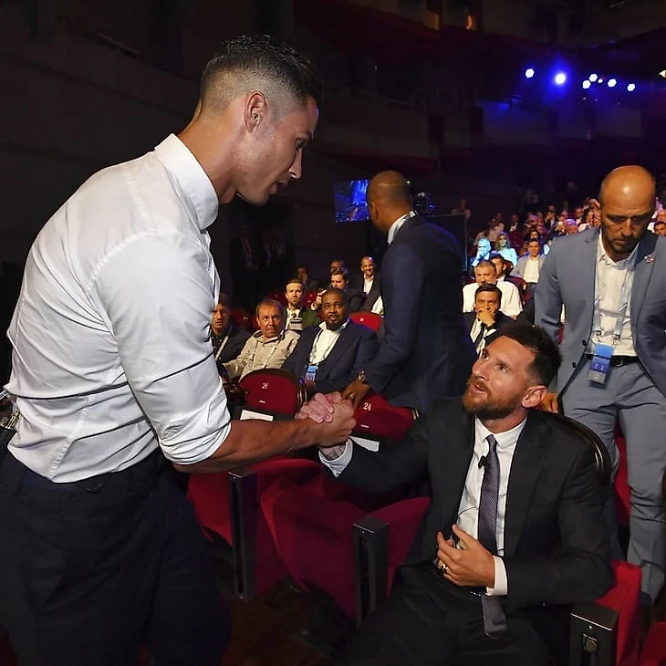 Легенды приветствуют друг друга. Кстати, видели, как Криштиану говорит, что пора уже наконец поужинать с Лео?