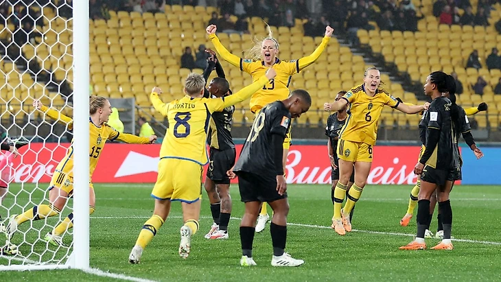 В первой половине встречи Швеция долго владела мячом, но обошлось без голов. Зато во второй половине случилось неожиданное: Кгатлами воспользовалась невнимательностью Аманды Илестедт и пробила по воротам Зечиры Мушович, которая отбила удар, но на добивание успела Хильда Магайя, открывшая счёт в игре. ЮАР устремились к исторической победе, но затем включились соперницы: на 65-ой минуте победительница ЛЧ-2022/23 Фридолина Рольфё замкнула прострел Йоханны Риттинг Канерид, а в самом конце Илестедт исправилась за привоз, забив с подачи с углового.