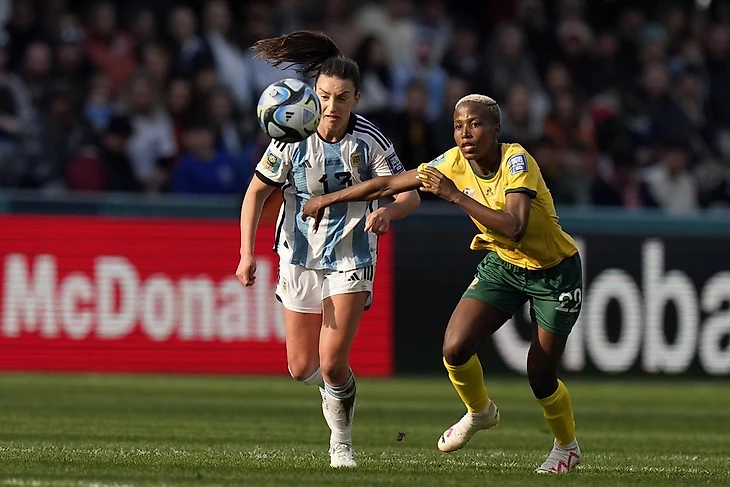 Стартовый отрезок игры прошёл в довольно спокойном темпе. На 25-ой минуте капитан африканской сборной, Рефило Яне, получила травму и не смогла продолжить игру. Через 5 минут Темби Кгатлана удачно выбегает из-под защиты соперниц, выдаёт Линде Мотало почти на пустые ворота, и Линда забивает лёгкий гол. Вскоре Ларрокетт почти удаётся сравнять, но мяч после её «подачи» попал в штангу. Впервые на Кубке мира была проведена обратная замена: Эллис сняла Бийяну после того, как она заменила Яне после её травмы и получила жёлтую карточку. На 66-ой минуте Жермен Сеопосенве обокрала Альдану Кометти и прострелила на Кгатлану, удвоившую преимущество. По игре казалось, что ЮАР не упустит своего, но на 74-ой минуте София Браун отыграла один мяч, забив дальним ударом, а через 5 минут Ромина Нуньес после подачи Ямилы Родригес (обе начали матч на скамье запасных) всё-таки сравнивает счёт, оставив южноафриканок без первой победы на чемпионатах мира.