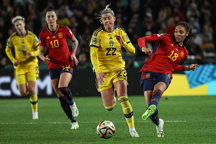 В середине второго тайма Альба Редондо упустила возможность открыть счёт. Первый гол пришёлся на 81-ую минуту: Дженифер Эрмосо подавала на Эву Наварро, но мяч прилетел к Сальме Паральюэло, которая забила второй гол на своём первом мундиале. Через 7 минут Ребекка Блумквист после скидки Лины Хуртиг сравняла счёт. Не успели шведки отпраздновать свой гол, как Испания снова вышла вперёд. Во время углового Кармона великолепным выстрелом с линии штрафной забила победный гол. Испания в очередной раз обновляет свой лучший результат на Кубках мира, а Швеция снова попробует выиграть бронзовые медали.